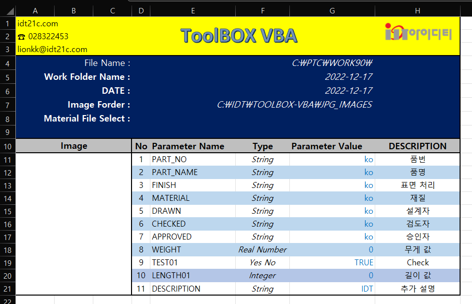 Set oBaseParameter = oParameterOwner.GetParam(Cells(i + 11, "E")) '// 엑셀의 PARAMETER 이름으로 모델의 PARAMETER 가져오기