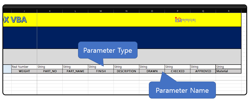 3. Import the parameter value defined in the Excel file from the model (PART_NO ~ APPROVED)