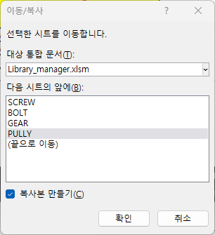 엑셀의 "screw" Sheet를 복사하여 라이브러리 그룹 카테고리를 추가 또는 삭제 합니다.