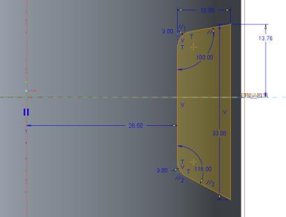 커넥팅 로드와 결합하는 중심 축의 위치는 치수 값에 의해 조정 할수 있습니다. 중심축 치수 값은 피스톤 바닦으로 부터 "29.5" 거리를 갖습니다. 데이텀 평면의 이름은 "PIN_PLN" 로 정의합니다