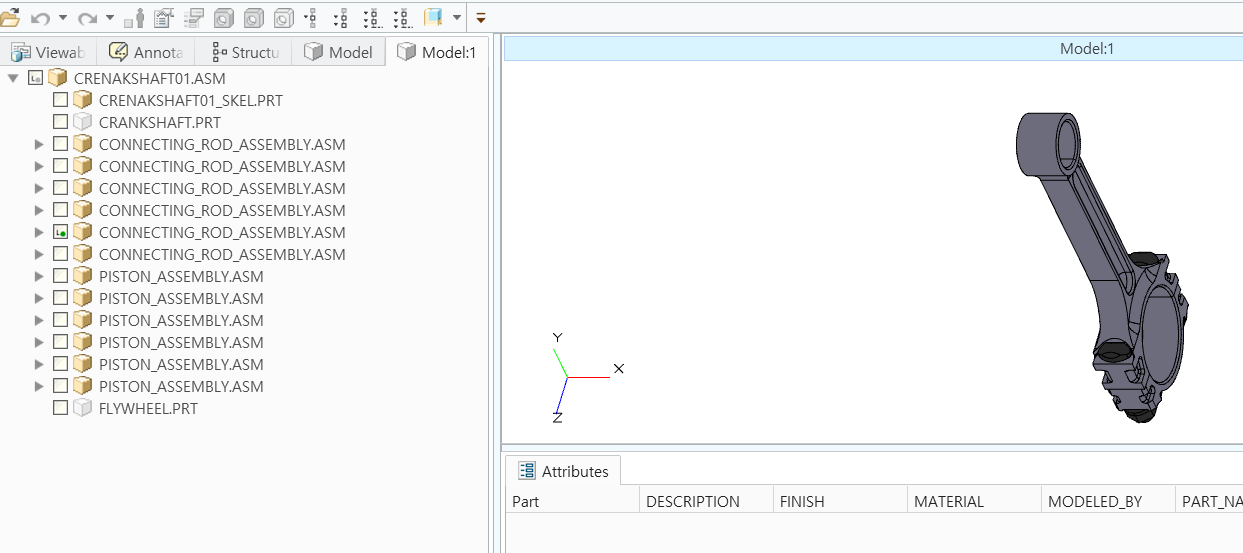 PVZ 또는 CREO 파일을 OPEN 하면 Structure 모드와 기본 모델 모드가 생성 됩니다