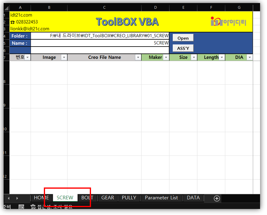 예제 ) c:\ptc\creo_stds\std_library\screw