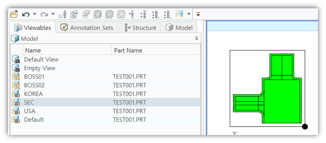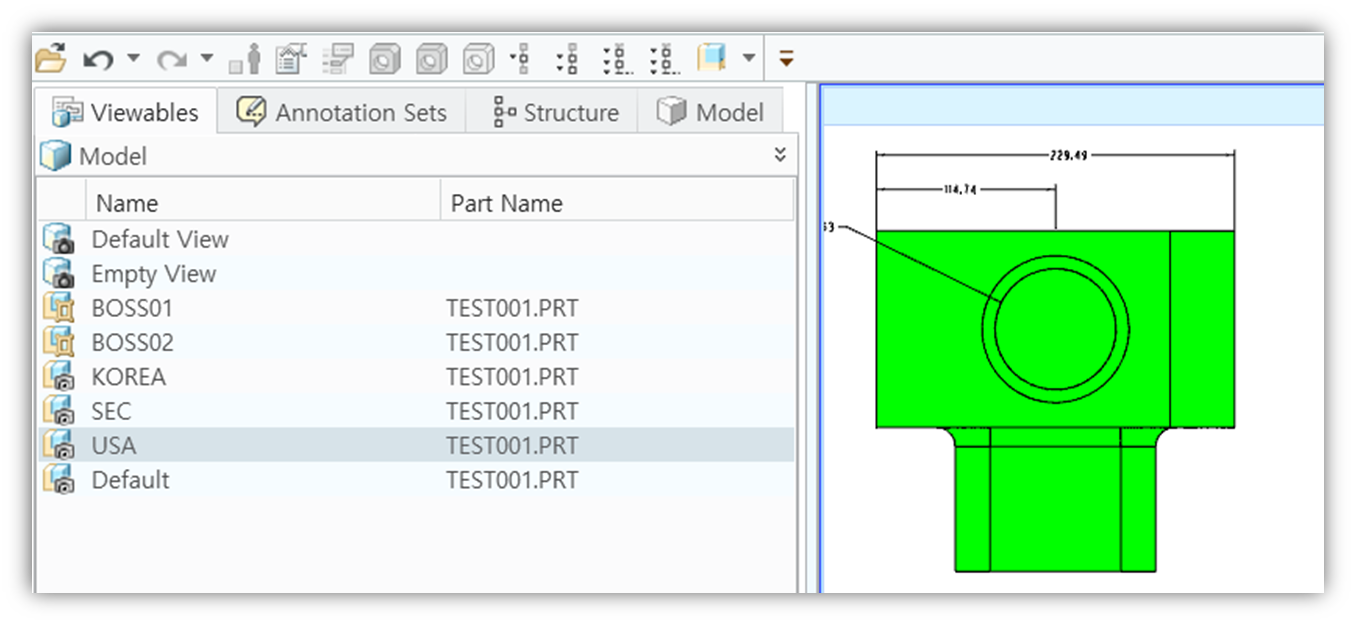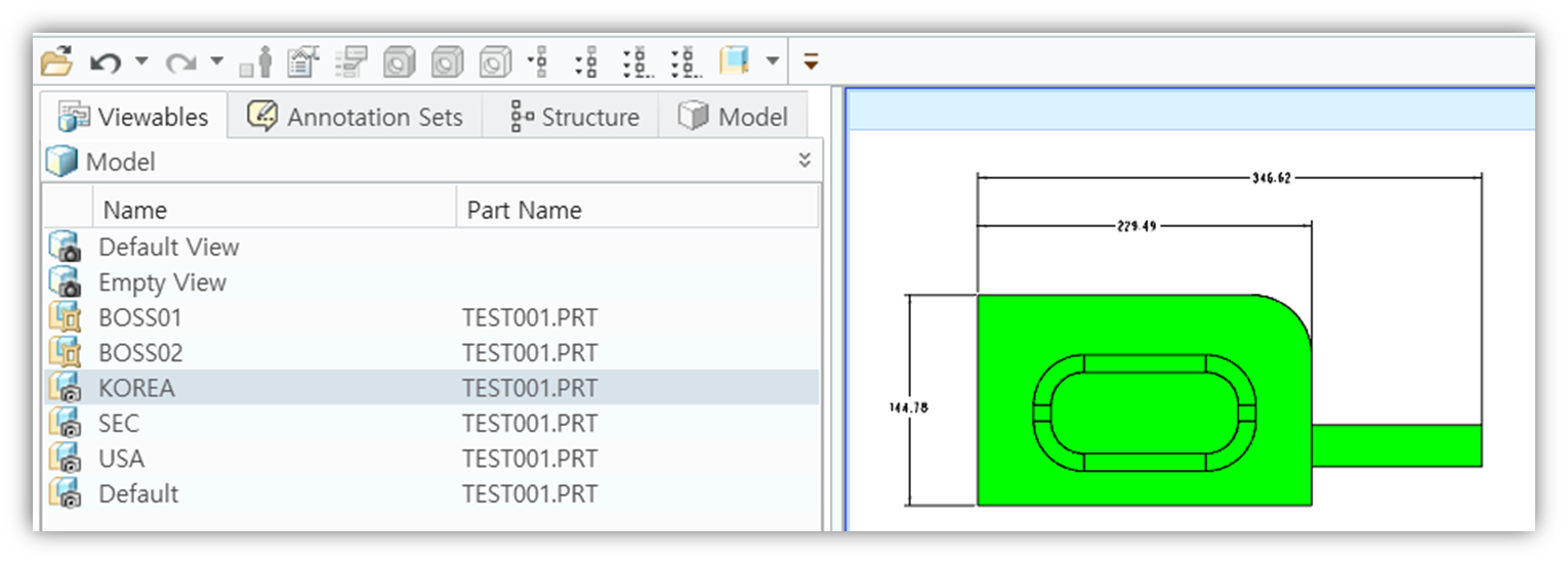 설계자는 설계 Review 또는 도면을 생성 하기 컴바인 뷰를 만듭니다. 컴바인 뷰는 치수 및 공차, 심볼등을 입력 합니다.
