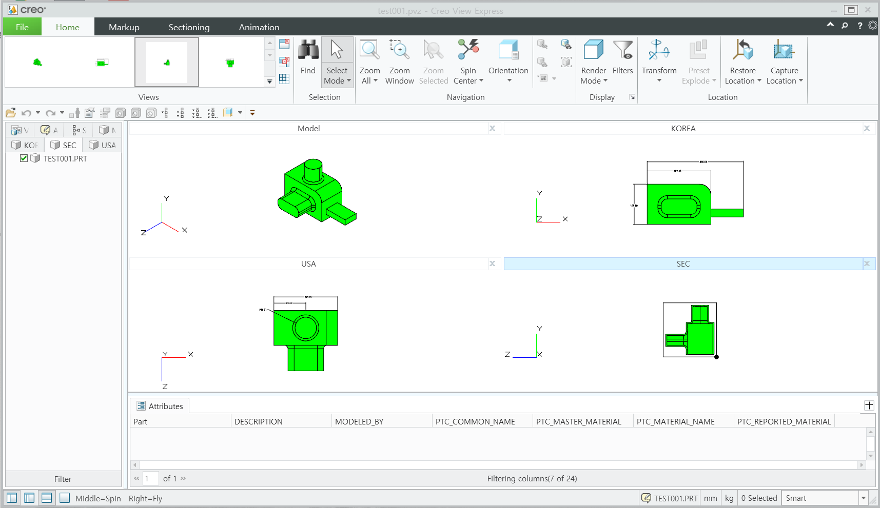 아래와 같이 Creo View Express 화면을 구성 할수 있습니다.