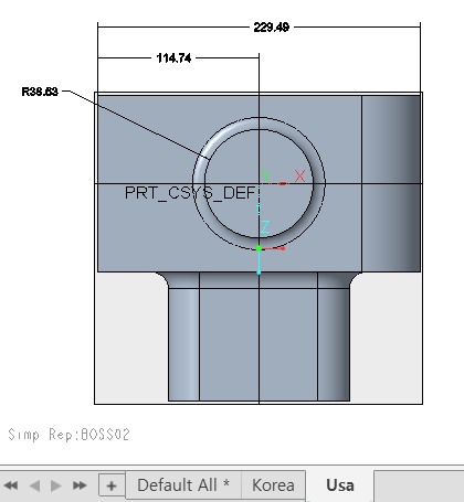 Part 파일에 Feature를 감추기 위해 단순화 표현을 사용 하였습니다. - "솔리드"형상을 감출수 있습니다.