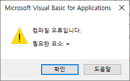 SetConfigOption은 "call"을 추가 해야 하는 sub(프로시져) 입니다. call을 추가 안하면 VBA 에디터 에서 아래와 같이 오류가 발생 합니다.