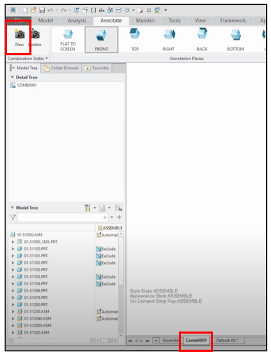 Annotation > New 버튼을 클릭하면 새로운 "Combination"을 만들수 있습니다. "Combination" 탭의 이름을 모든 설계자가 공통으로 사용 할수 있도록 규칙이 있어야 합니다. 설계 디자인 리뷰 항목과 연계 하여 이름을 정의해 보십시요.