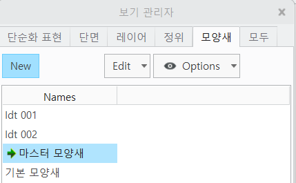 View Manager 기능을 사용하여 색상, 단면, Layer 상태 등을 목록으로 관리 할수 있습니다.