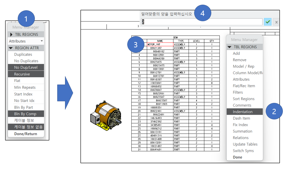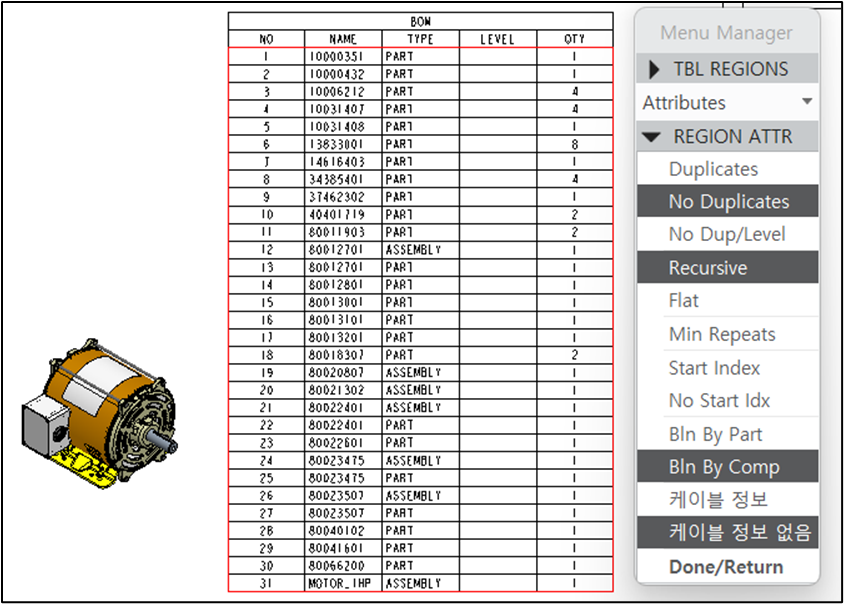 ■ BOM Table 속성을 사용하여 BOM Table의 내용 제어