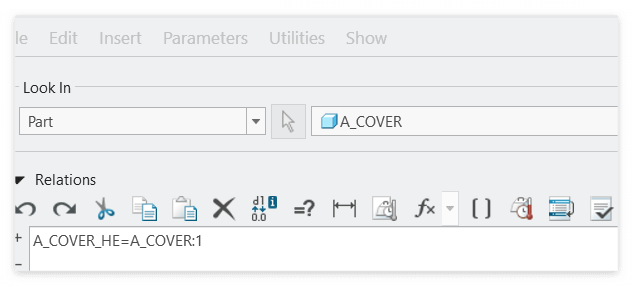 단, 부품의 치수 는 관계식에서 왼쪽에 있어야 합니다. 오른쪽에 있으면, 오류가 발생 합니다.