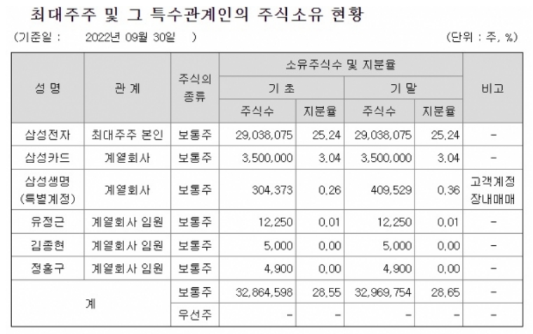 삼성 그룹 지배구조 개편에서 핵심 회사는 아니지만, 지주사 전환 등에서 빼놓을 수 없음에는 분명하다.