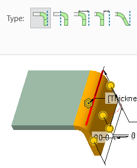 판금 부품을 제작할 때 굽힘이 발생하는 정확한 위치를 지정하는 것을 의미합니다. 즉, 평면적인 판을 굽힐 때 굽힘이 시작되는 지점과 끝나는 지점을 설정하는 것입니다.