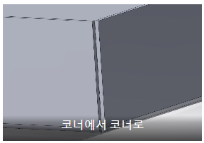 | 코너 릴리프 도구를 사용하여 판금 부품의 하나 이상의 코너에 릴리프를 추가합니다. 릴리프를 추가하면 판금 단면이 모델에서 제거됩니다. | ![]() |
