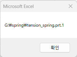 위 그림 파일 경로 "G:\spring\tension_spring.prt.1"를 "G:\spring"와 "tension_spring.prt"로 분리하여 VBA에서 셀에 저장하는 코드 입니다