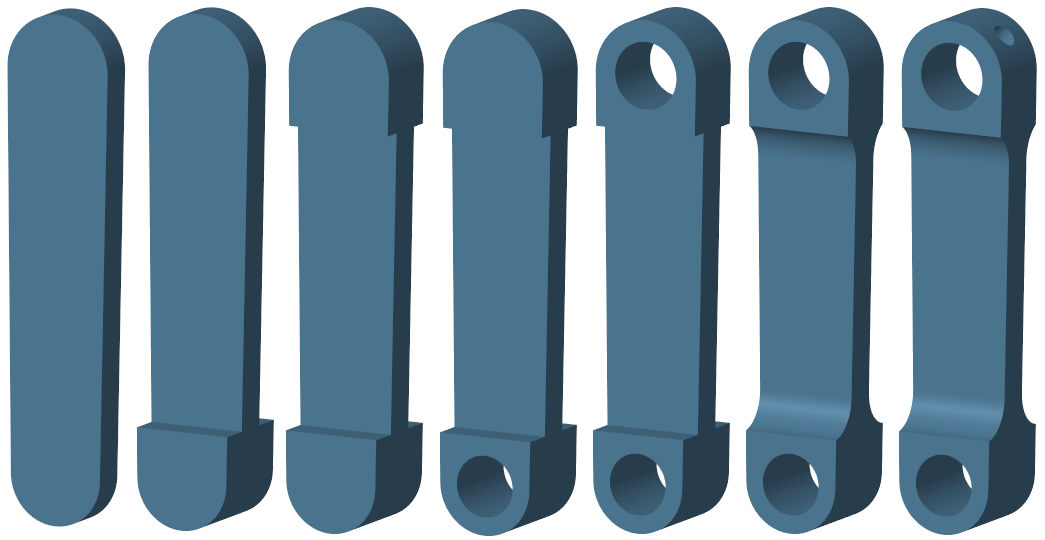 - 모델의 기하학적 정의는 사용된 피쳐 유형과 각 피쳐가 배치된 순서로 정의됩니다. 각 기능은 이전 기능을 기반으로 하며 이전 기능을 참조할 수 있으므로 설계 의도를 모델에 구축할 수 있습니다.
