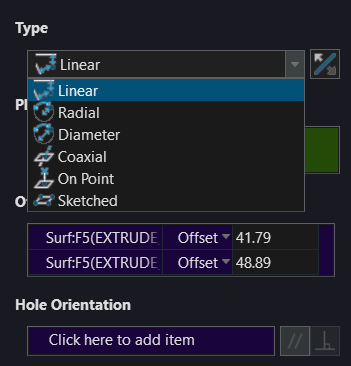 이전 버전에서는 치수 패턴으로 패턴화된 구멍 피쳐의 구멍 유형을 변경할 수 없었으며, 패턴을 삭제하고 다시 생성해야 했습니다. 그러나 새로운 업데이트에서는 편집-정의 워크플로 동안 치수 패턴 내의 구멍 피쳐의 구멍 유형을 변경할 수 있게 되었습니다.