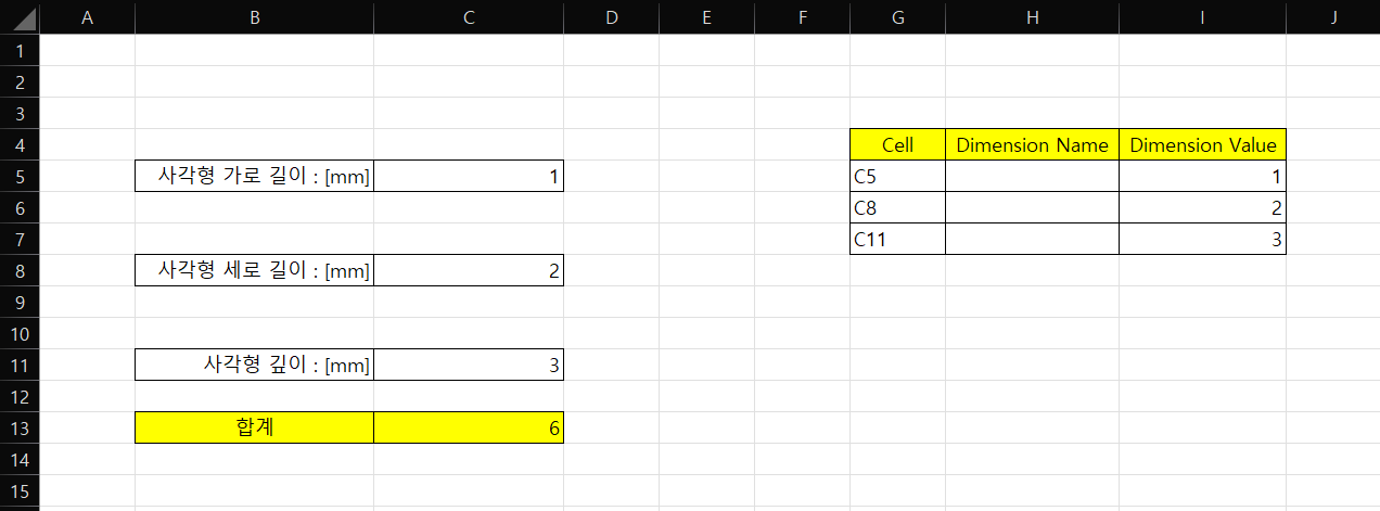 □ Excel의 Cell과 Creo Dimension 이름 연계
