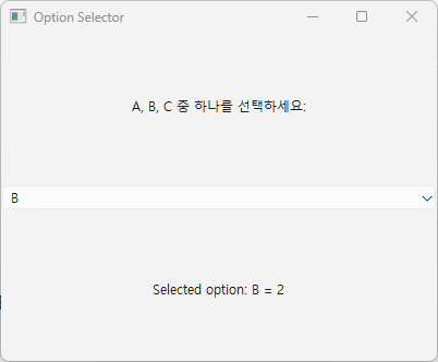 self.resultLabel.setText("선택된 옵션: ")