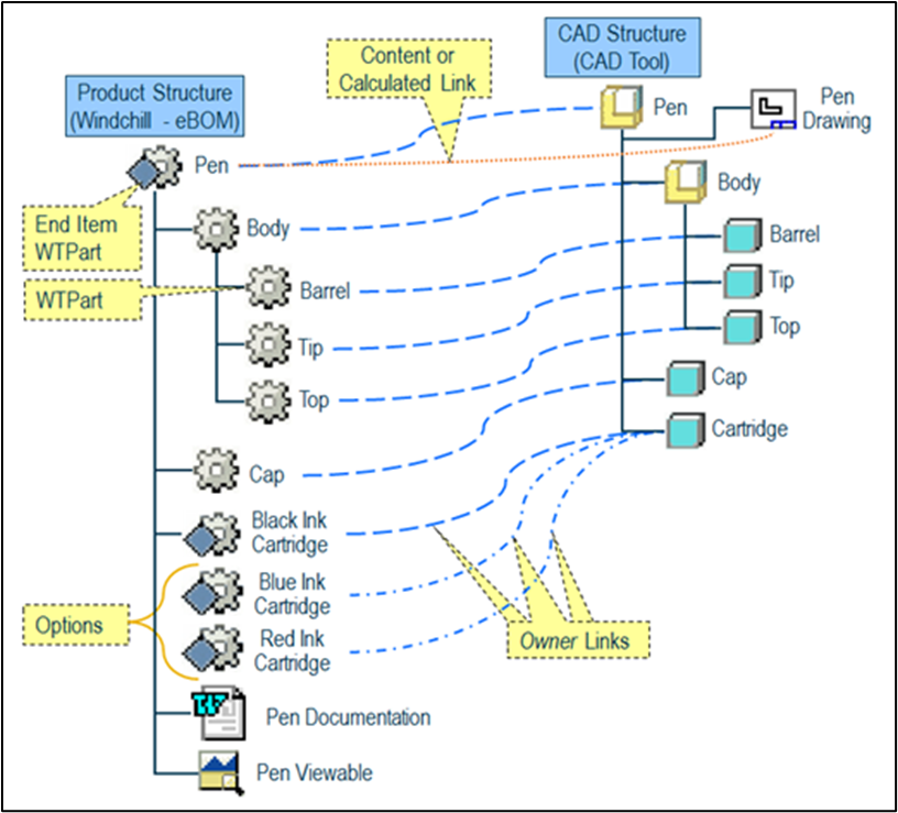 - CAD 데이터 없이도 WTPart 객체로 제품 구조(BOM), 속성, 라이프사이클 상태 등을 참조 가능